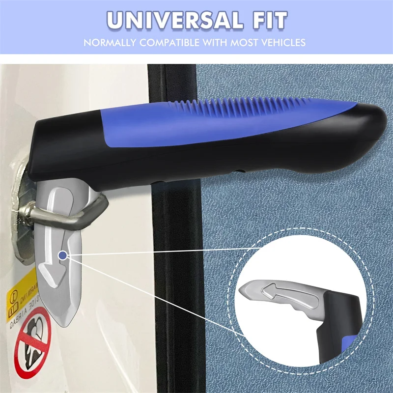 Detta smarta verktyg kombinerar två viktiga funktioner i ett. Det fungerar som fönsterbrytare och som handtag eller lyftanordning för bildörrar. Ha det nära till hands för daglig hjälp och säkerhet i nödfall.