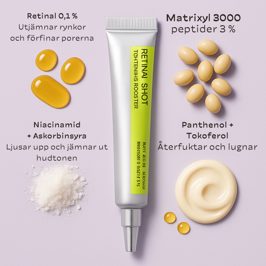 Den kraftfulla formulan från KlaraHud™ innehåller retinal, en avancerad ingrediens som stimulerar cellförnyelse, minskar fina linjer och förbättrar hudens struktur. Perfekt för dig som vill ha märkbara resultat utan irritation.