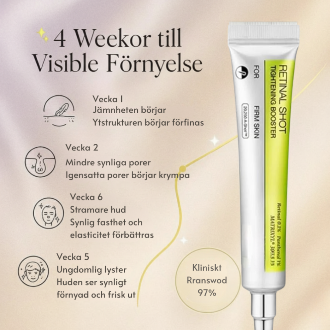 Tusentals i Sverige använder KlaraHud™ Retinal Shot för att få jämnare hud, mer lyster och en fräschare känsla. Beställ idag och upplev din huds fulla potential.